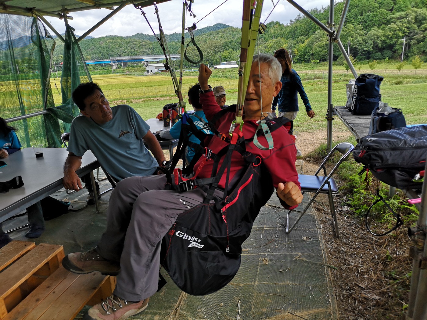 北風が強い予報でしたが、バーズパラグライダースクールの八木練習場では朝7時から皆様汗を流されていたようです。