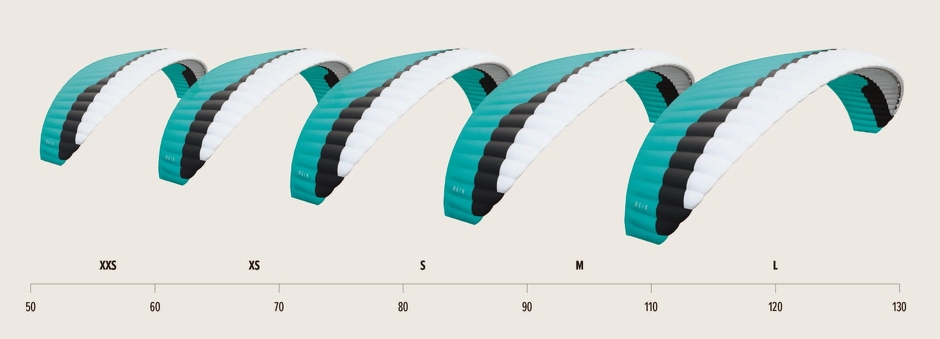 ボレロ8は、認定重量範囲の拡大により、各サイズでより多くのパイロットに対応できるようになりました。この柔軟性によりサイズの選択が簡素化され、操縦性やフライト安全性を損なうことなく、ひとつのサイズでより幅広いパイロットに対応できるようになります。