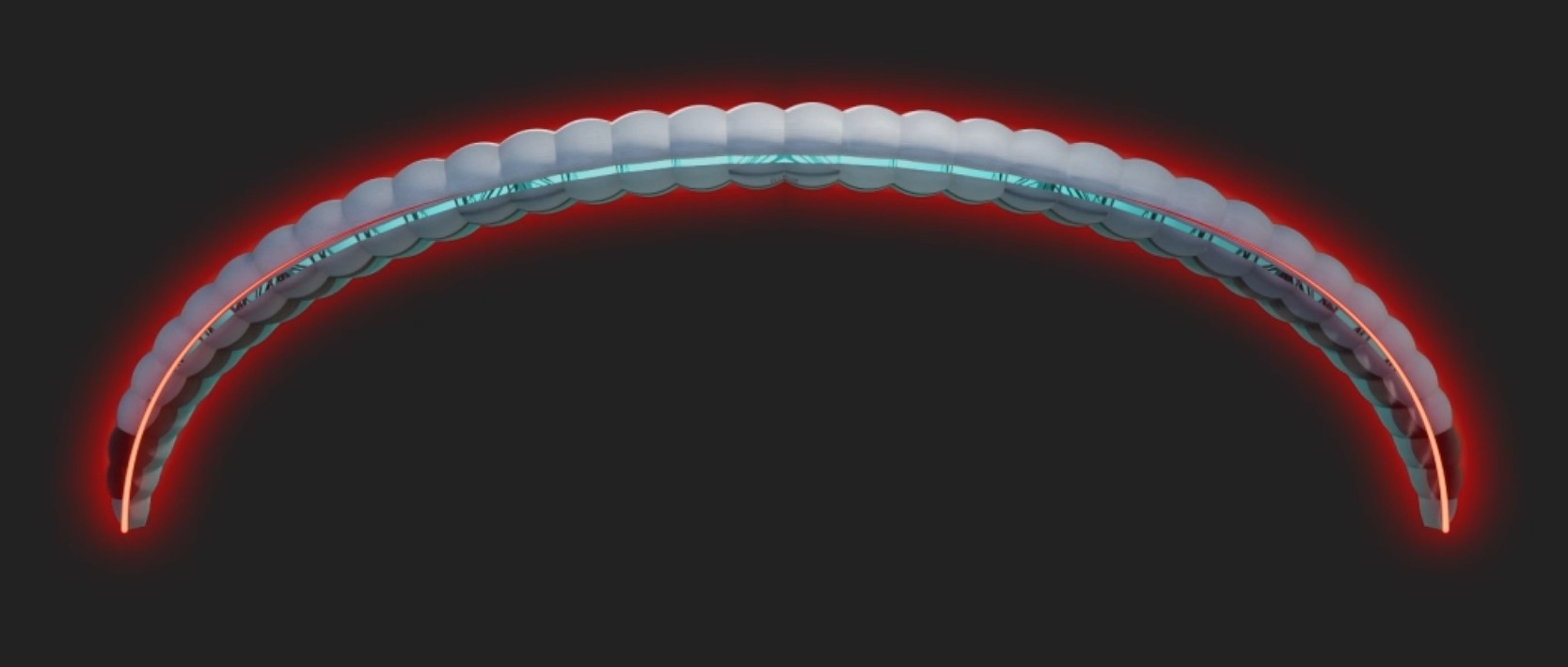 新しいEPTシステムと改良されたロッド構成により、迎角に関わらず、リーディングエッジとノーズの形状が一定に保たれます。つまり、スムーズで予測可能なインフレーションと、パイロットが滑走する間もキャノピーが頭上に快適に留まり、前方への揺れがなく、予測可能な動きを実現します。これによりテイクオフの確実性が向上し、繰り返し練習が可能です。