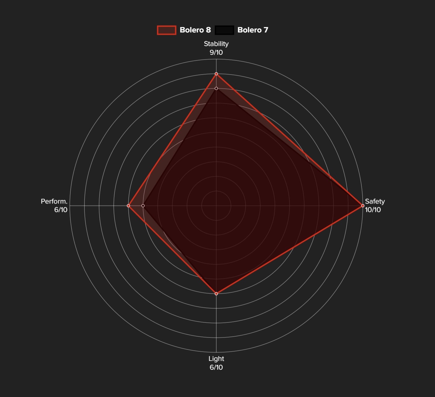 BOLERO8は、前作BOLERO7と比較して、パフォーマンスとスタビリティが向上しています。
